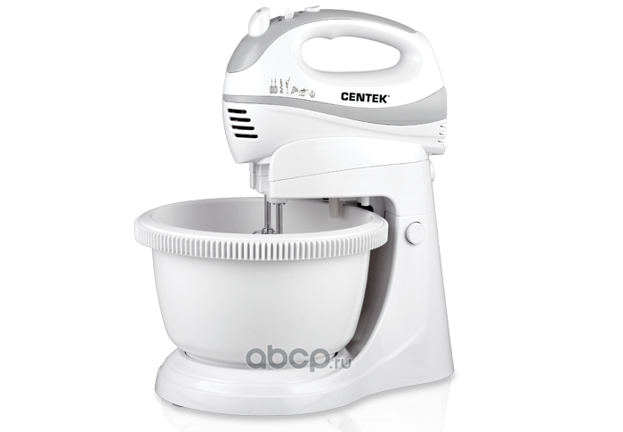 Миксер "Centek" с чашей (белый/сер) 320Вт, 3.5л, 5 скоростей+турбо, (взбивание/замешивание)
