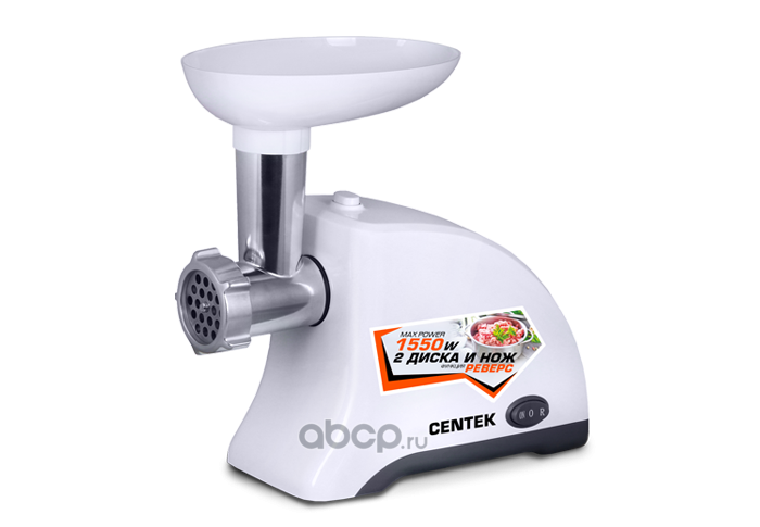 Мясорубка "Centek" 1550Вт, реверс, 2 диска, стальной нож и узлы