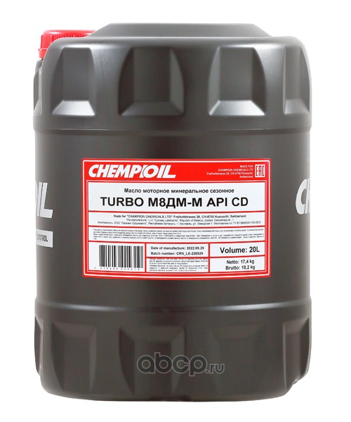 | CHEMPIOIL | CH330320E | Масло моторное минеральное CHEMPIOIL Turbo М8ДМ-М 20 20 л. | ||
