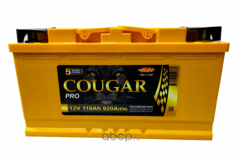 COUGAR | 6СТ62L0 | Батарея аккумуляторная 62А/ч 540А обратная полярн. стандартные (Европа) клеммы | |