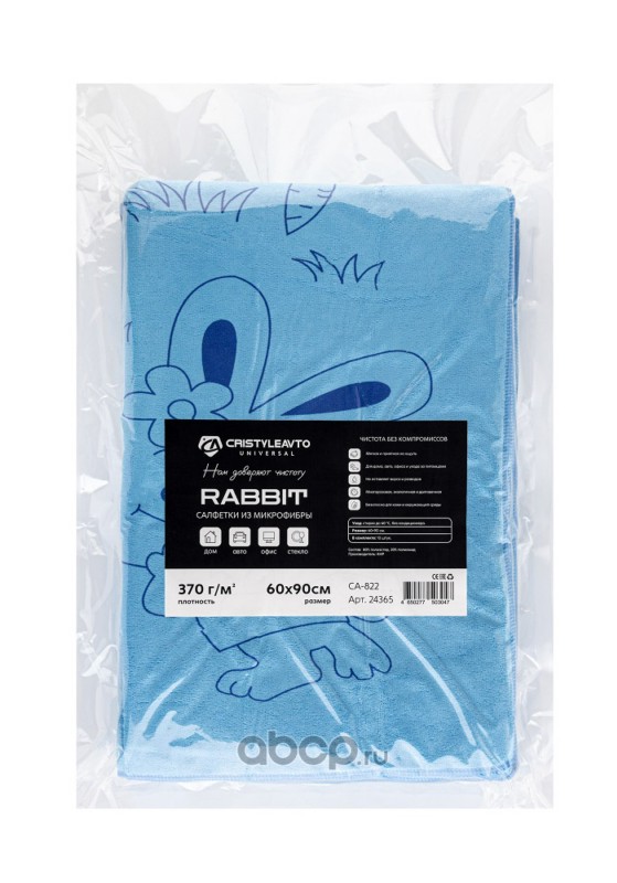 | CRISTYLEAVTO | 24365 | Салфетка микрофибра CA-822 Rabbit 60*90см к-т 10шт. (1/25) зайчик (вакуум.уп) | ||