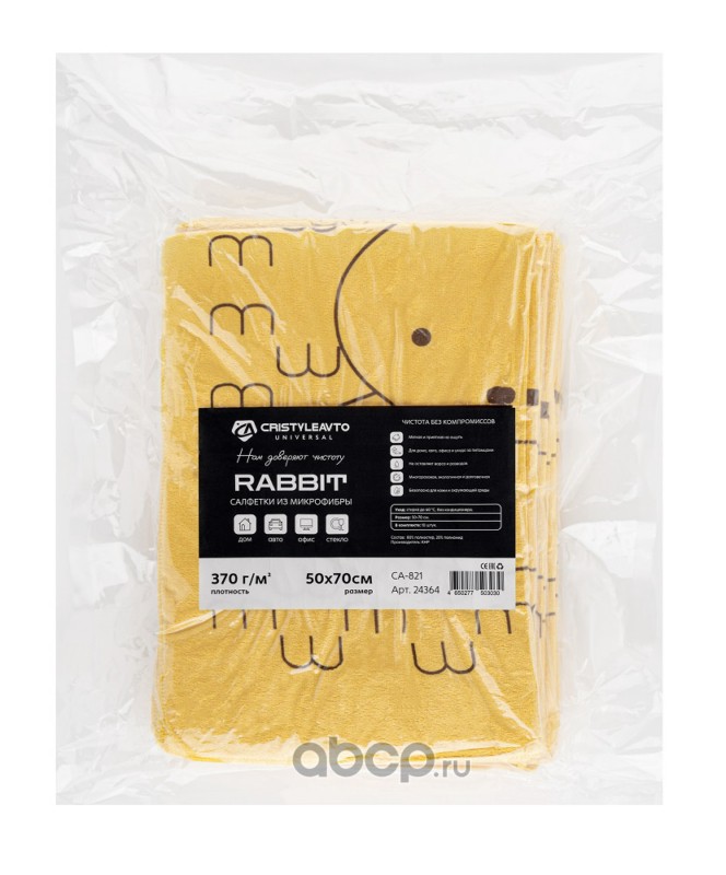 | CRISTYLEAVTO | 24364 | Салфетка микрофибра CA-821 Rabbit 50*70см к-т 10шт. (1/25) зайчик (вакуум.уп) | ||