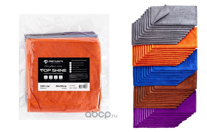 | CRISTYLEAVTO | 24322 | Салфетка микрофибра CA-803 Top Shine 30*30см к-т 50шт (1/12) | ||