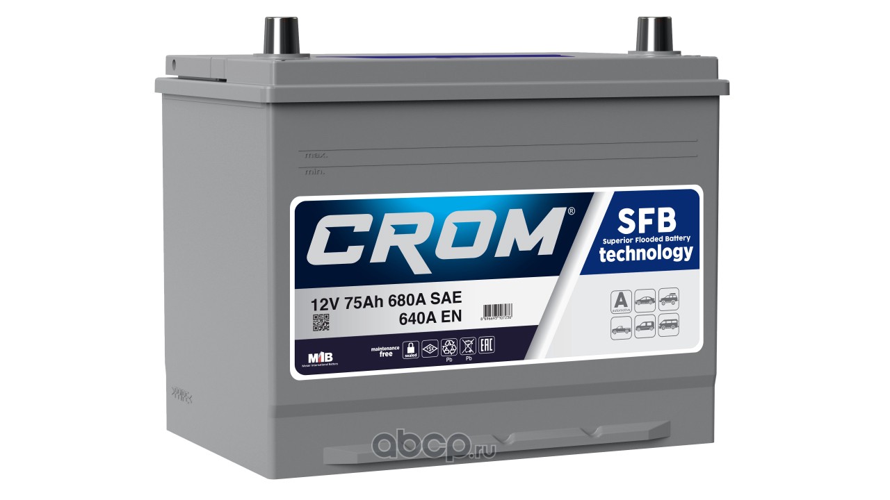 | CROM | D2675064C | Батарея аккумуляторная 75А/ч 640А обратная полярн. стандартные (Европа) клеммы | ||
