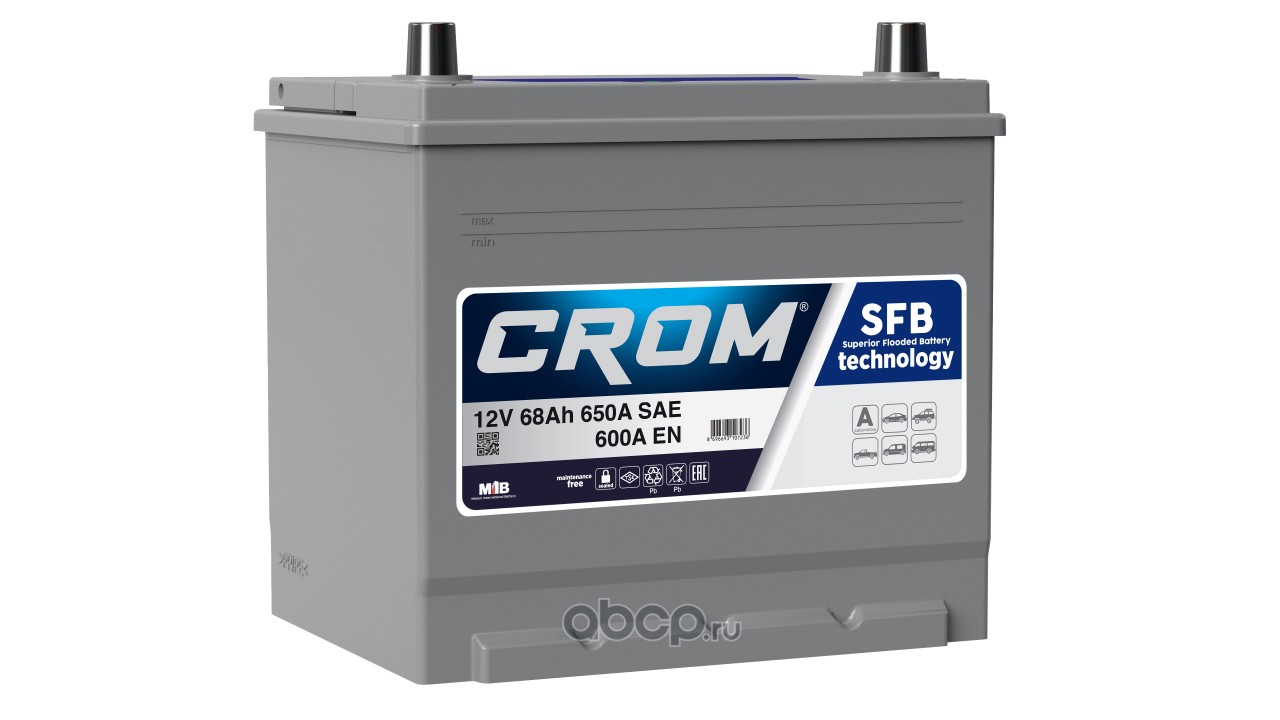 | CROM | D2368060D | Батарея аккумуляторная 68А/ч 600А прямая полярн. стандартные (Европа) клеммы |