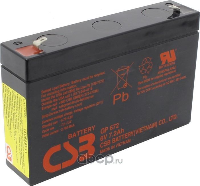 | CSB Battery | GP6672 | Батарея аккумуляторная 6В 7,2А/ч клеммы F1/F2 | ||