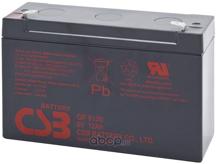 | CSB Battery | GP6120 | Батарея аккумуляторная 6В 12А/ч клеммы F1/F2 | ||