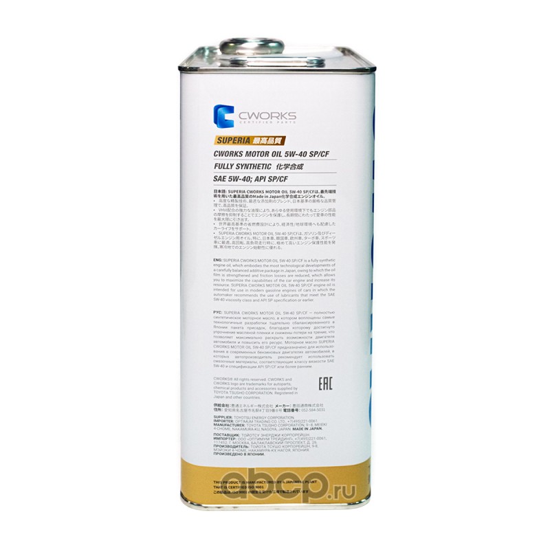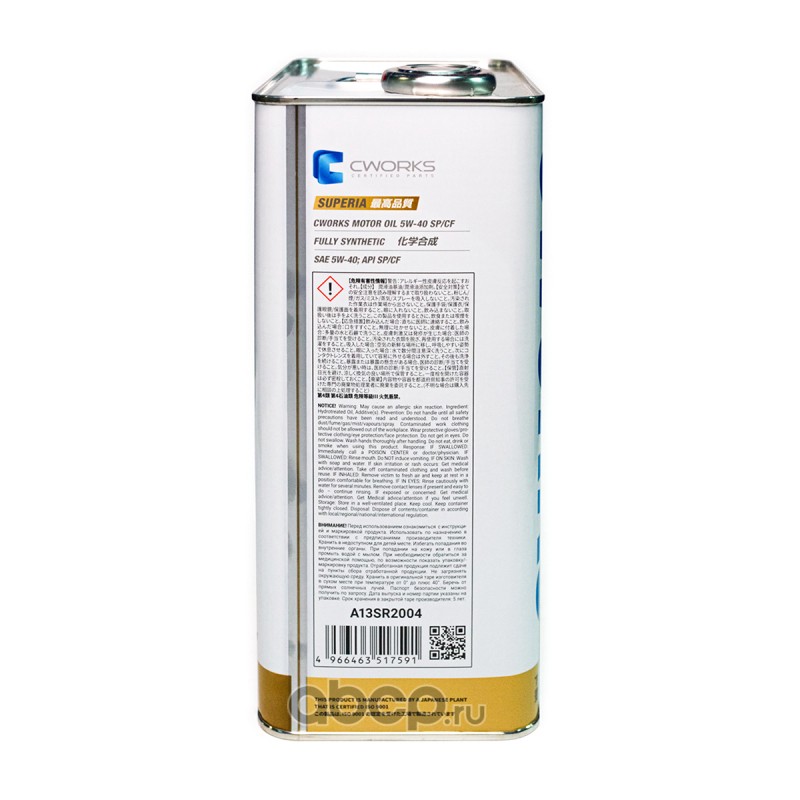 | CWORKS | A13SR2004 | Моторное масло CWORKS SUPERIA OIL 5W-40 SP/CF | ||