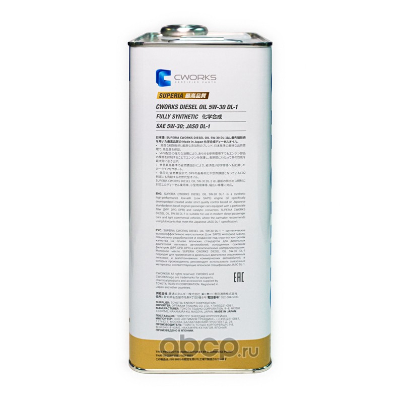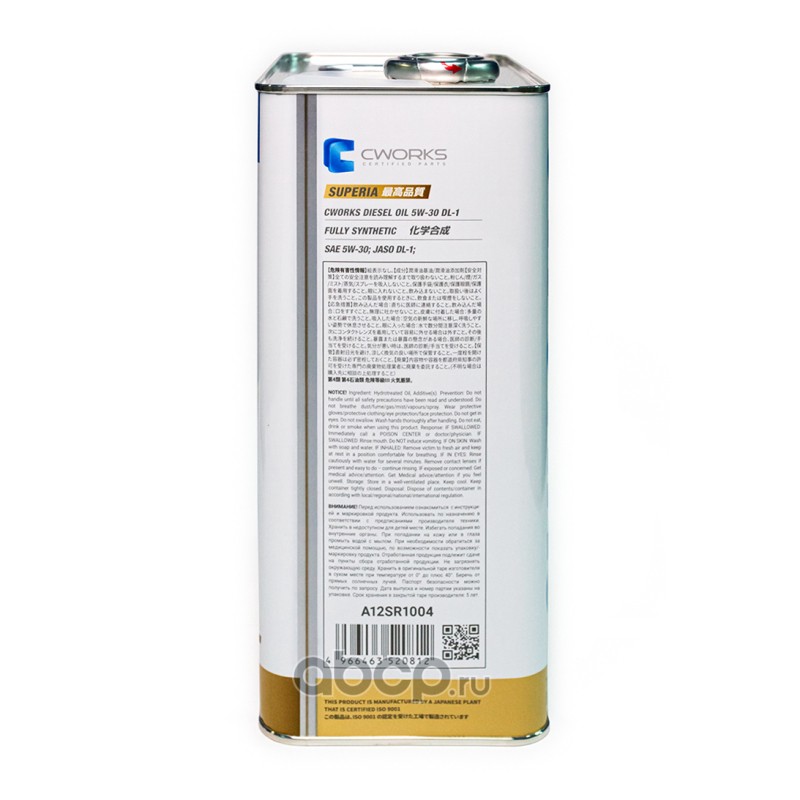 | CWORKS | A12SR1004 | Моторное масло CWORKS SUPERIA OIL 5W-30 DL-1 | ||
