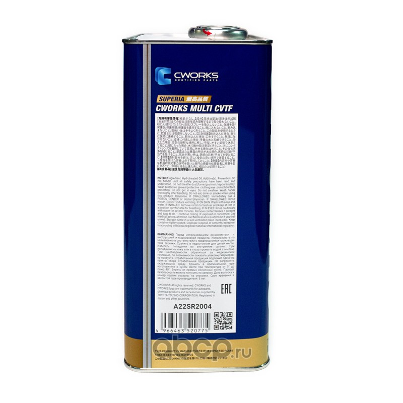 | CWORKS | A22SR2004 | Трансмиссионное масло CWORKS SUPERIA MULTUCVTF | ||