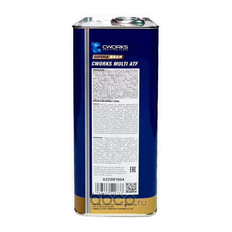 | CWORKS | A22SR1004A | SUPERIA CWORKS MULTI ATF, 5L Масло трансмиссионное ПРОМО КОМПЛЕКТ (1 промо коробка, 4л+1л) | ||
