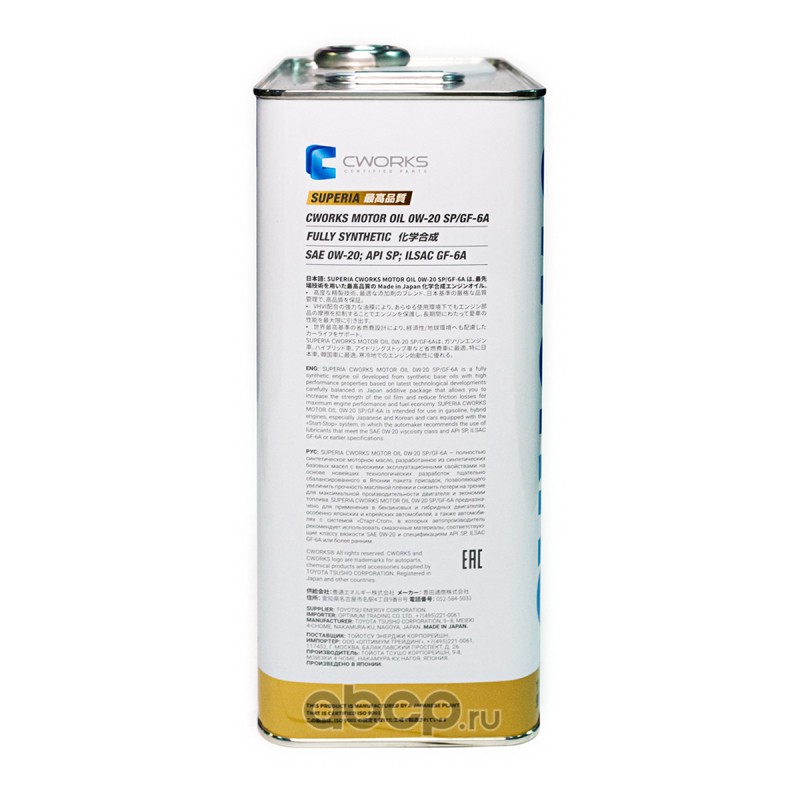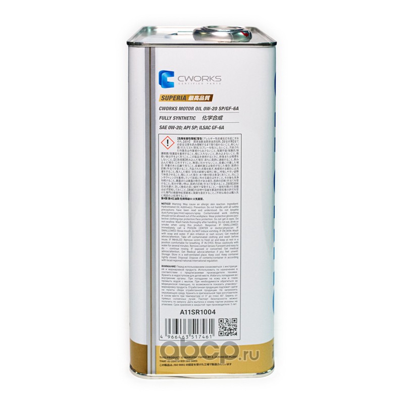 | CWORKS | A11SR1004 | Моторное масло CWORKS SUPERIA OIL 0W-20 SP/GF-6A | ||