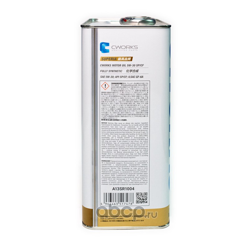 | CWORKS | A13SR1001 | Моторное масло CWORKS SUPERIA OIL 5W-30 SP/CF | ||