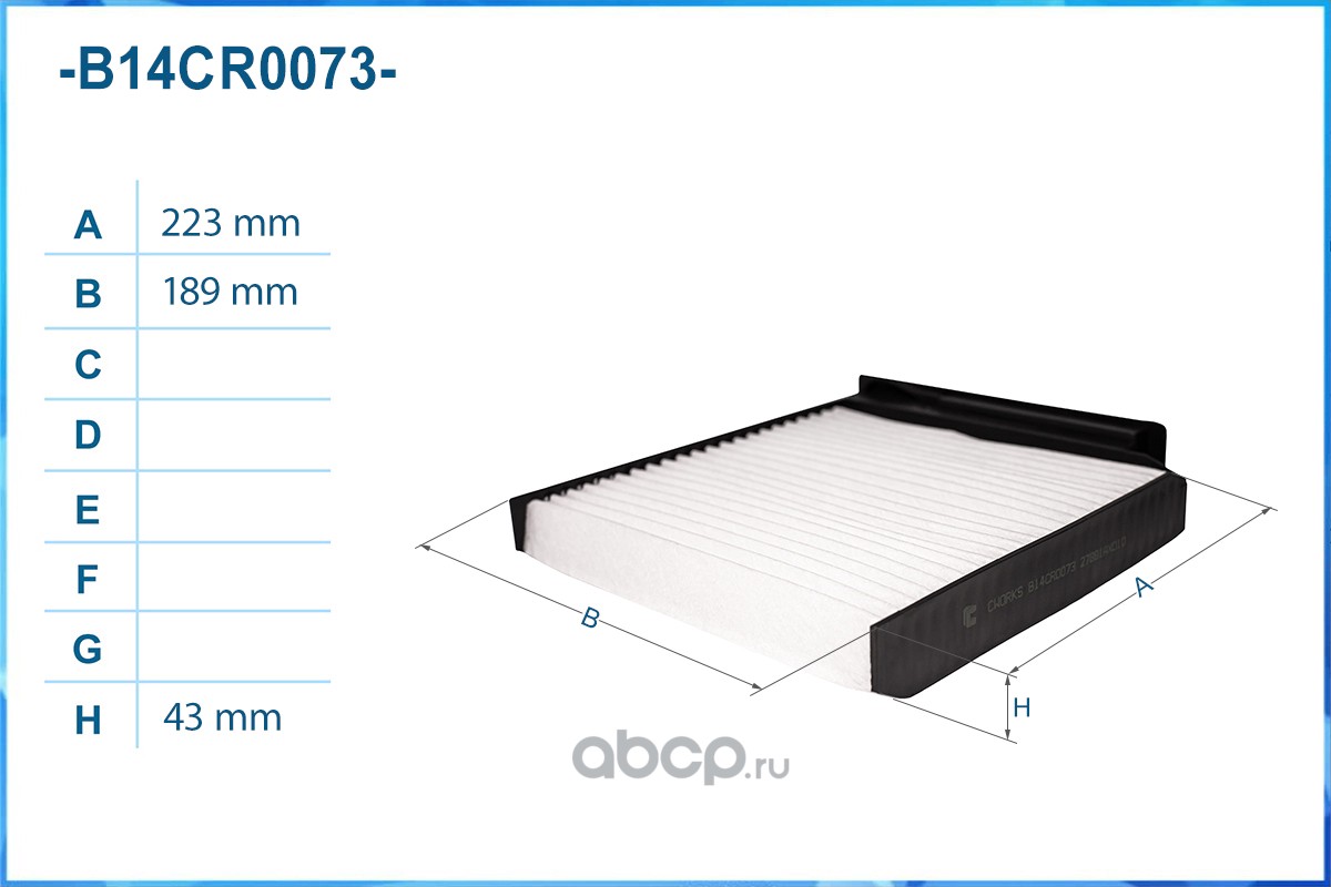 | CWORKS | B14CR0073 | Фильтр салонный пылевой | ||