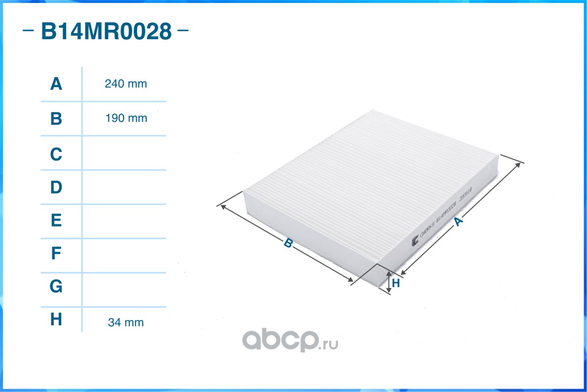 | CWORKS | B14MR0028 | Фильтр салонный пылевой | ||