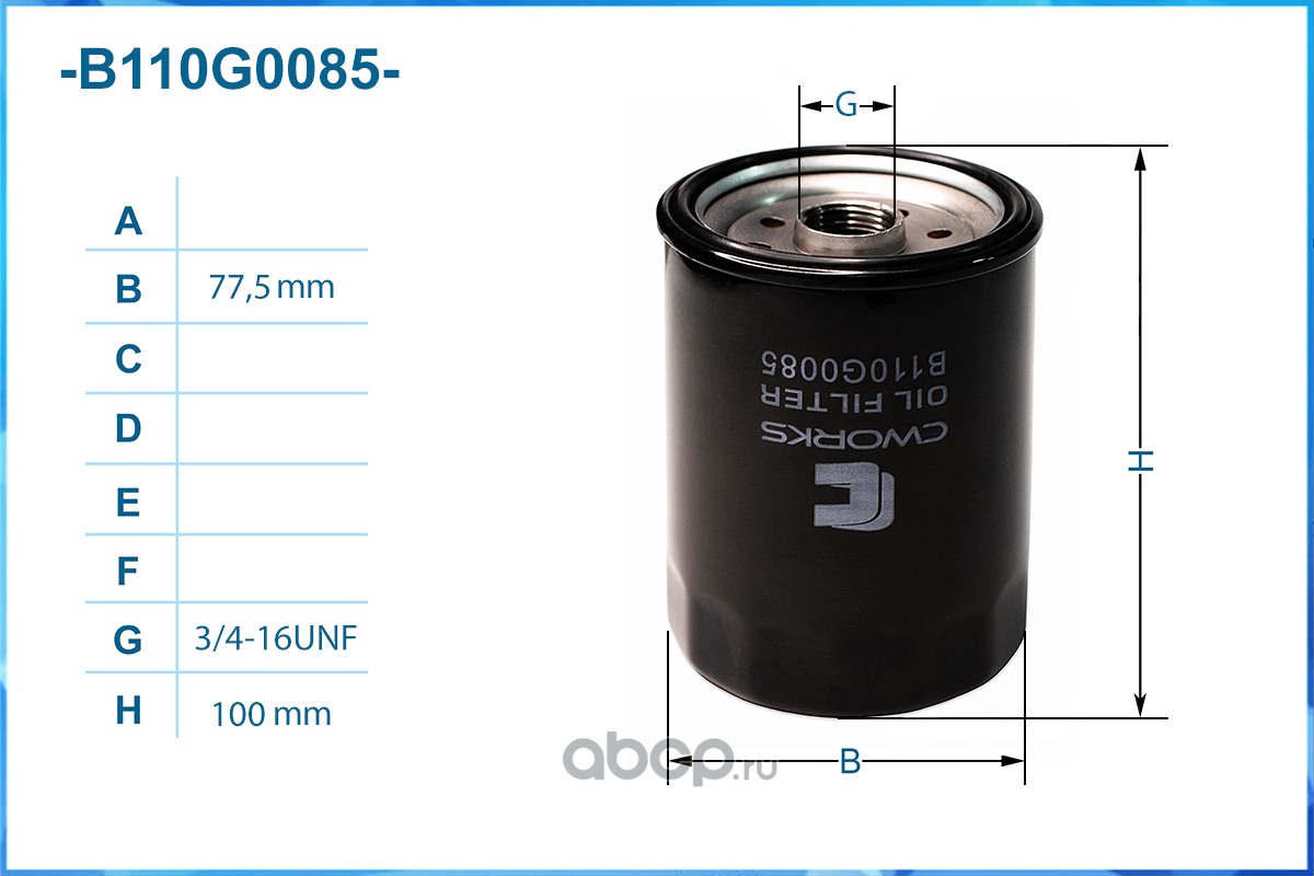 | CWORKS | B110G0085 | Фильтр масляный | ||