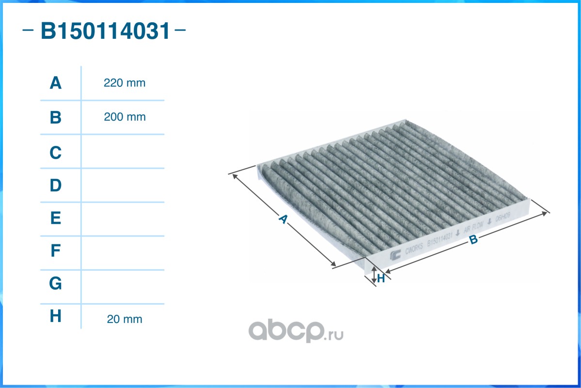| CWORKS | B150114031 | Фильтр салонный угольный | ||