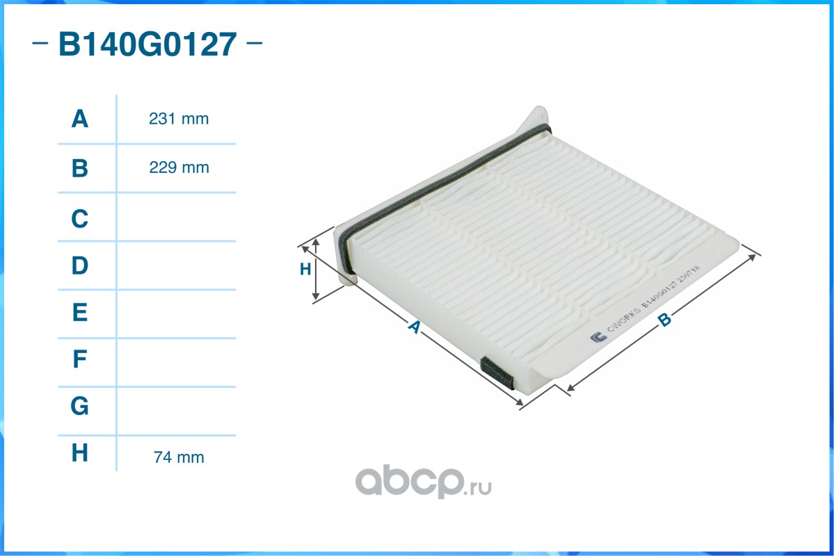 | CWORKS | B140G0127 | Фильтр салонный пылевой | ||