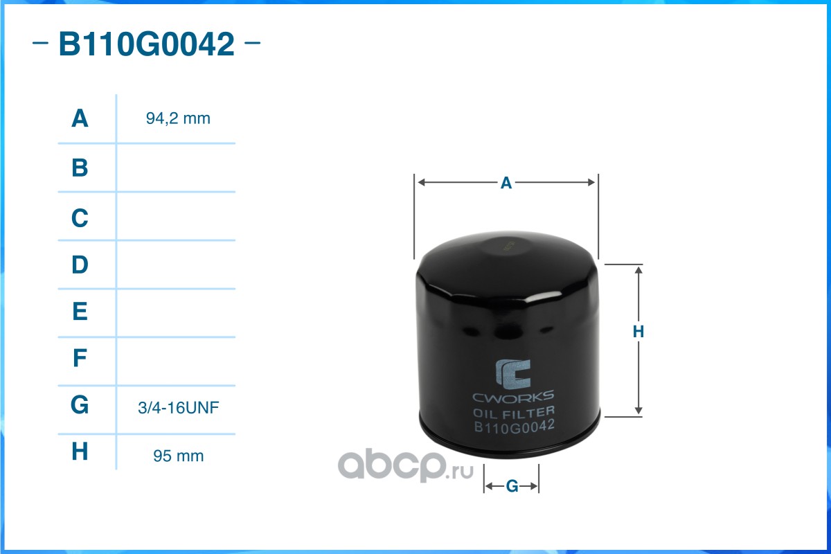 | CWORKS | B110G0042 | Фильтр масляный | ||