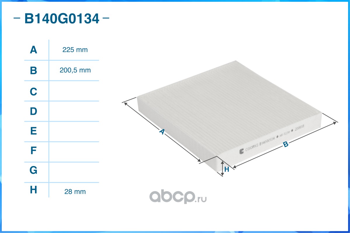 | CWORKS | B140G0134 | Фильтр салонный пылевой | ||