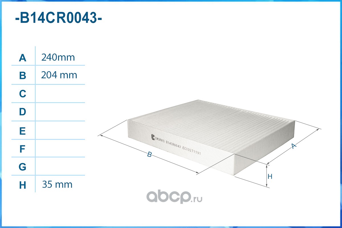 | CWORKS | B14CR0043 | Фильтр салонный пылевой | ||