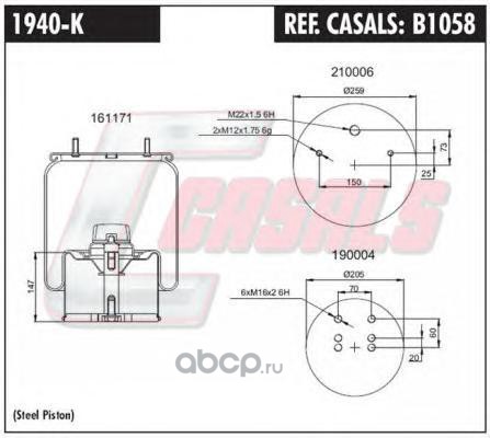 | Casals | B1058 | Кожух пневматической рессоры | ||