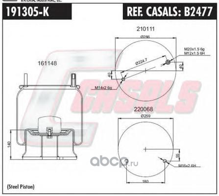 | Casals | B2477 | Кожух пневматической рессоры | ||