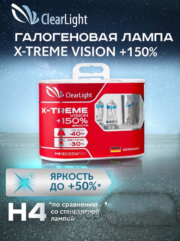 | ClearLight | MLH4XTV150 | Лампа 12V H4 60/55W +150% X-treme Vision 2 шт. DUOBOX | ||