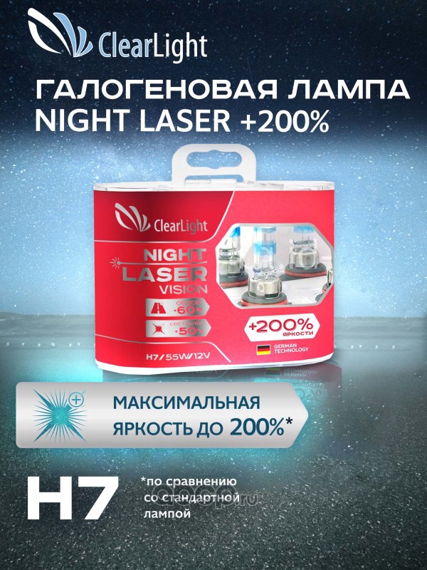 | ClearLight | MLH7NLV200 | Лампа галогеновая H7 Night Laser Vision+200% Light (2шт) | ||