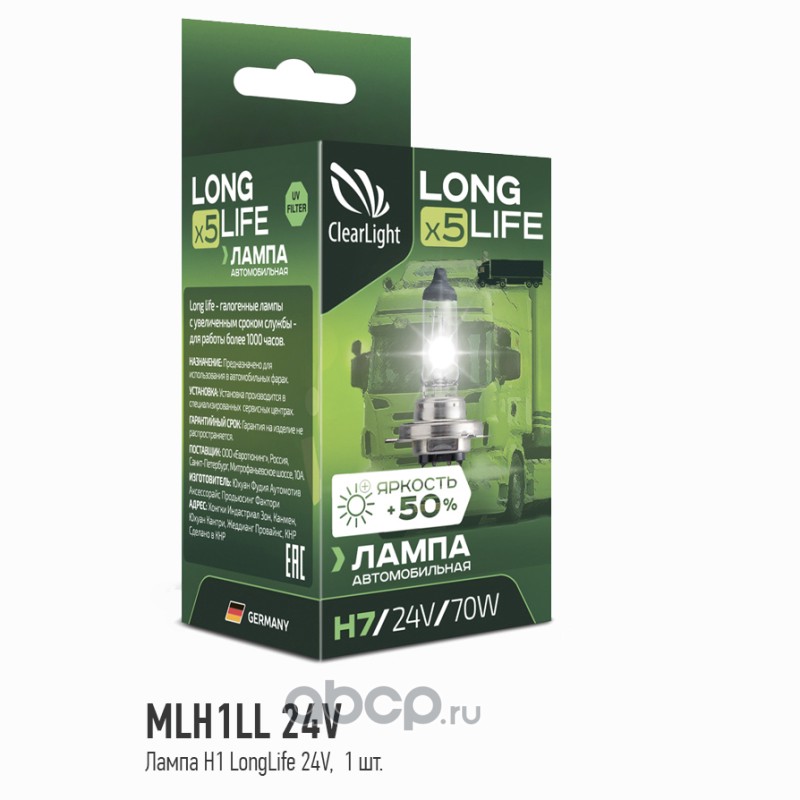 | ClearLight | MLH1LL1B | Лампа галогеновая H1 LongLife (1шт) | ||