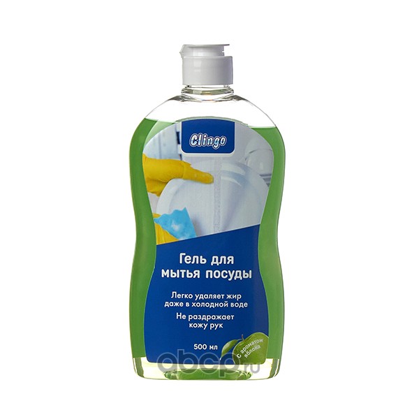 | Clingo | 990010 | Гель для мытья посуды с ароматом яблока, 500 мл | ||
