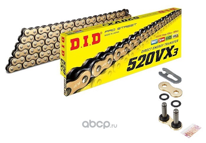 | D.I.D. | 525VX3GB124 | Цепь DID 525 VX3 G&B X-Ring золотая 124 | ||