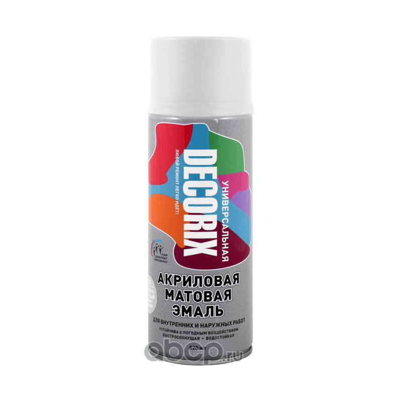 Аэрозольнная эмаль универсальная DECORIX, 520 мл белый матовый