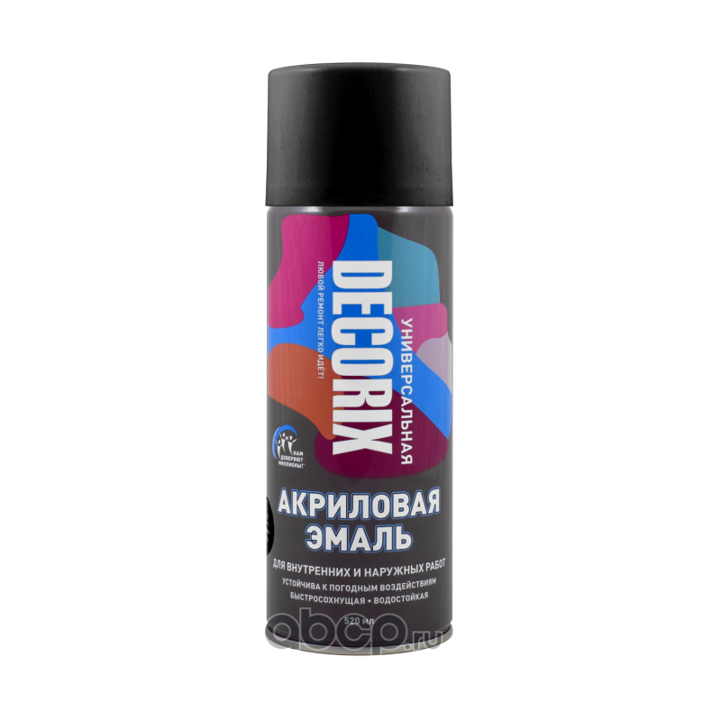 Аэрозольнная эмаль универсальная DECORIX, 520 мл, черный глянцевый