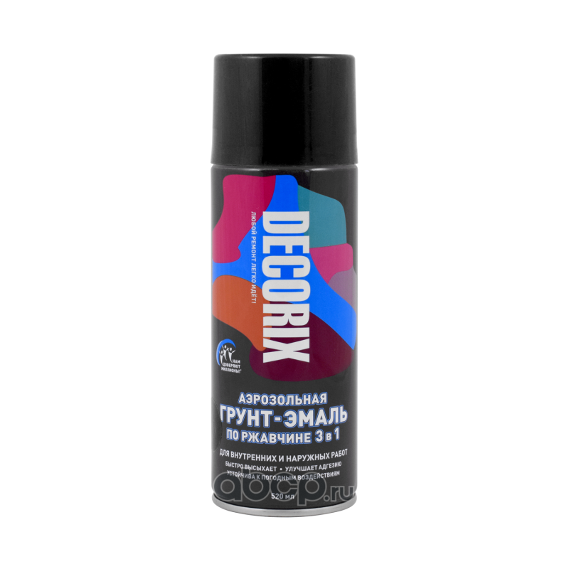 Аэрозольная грунт- эмаль по ржавчине 3в1 DECORIX, 520 мл. черный глянцевый