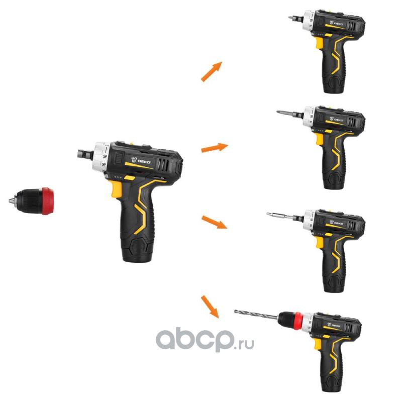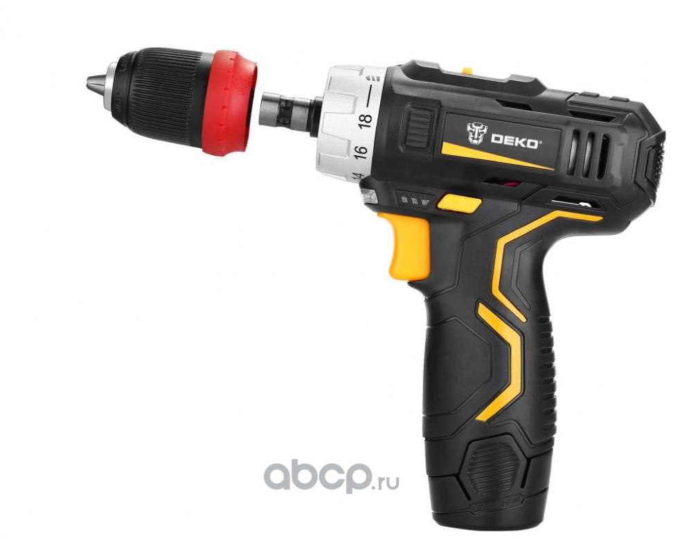 DEKO 0634082 Аккумуляторная дрель 12В DEKO GCD12DU3 3 в 1 (гайковерт, шуруповерт, дрель) с 2 патронами, 2 аккумулятора, кейс
