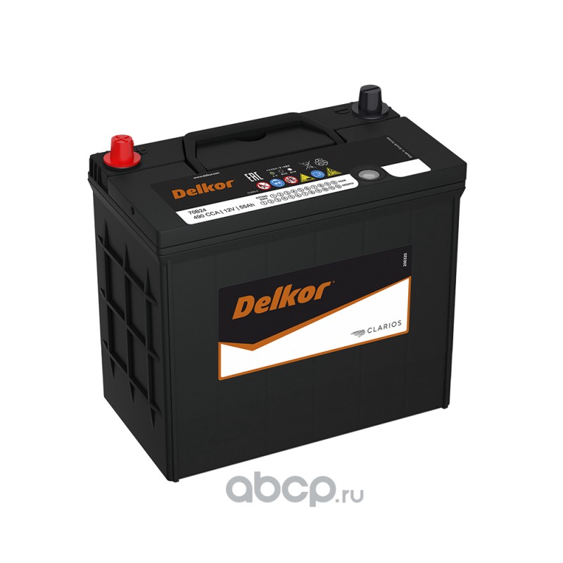 | DELKOR | 70B24L | Батарея аккумуляторная 55А/ч 490А обратная полярн. тонкие вынос. (Азия) клеммы | ||