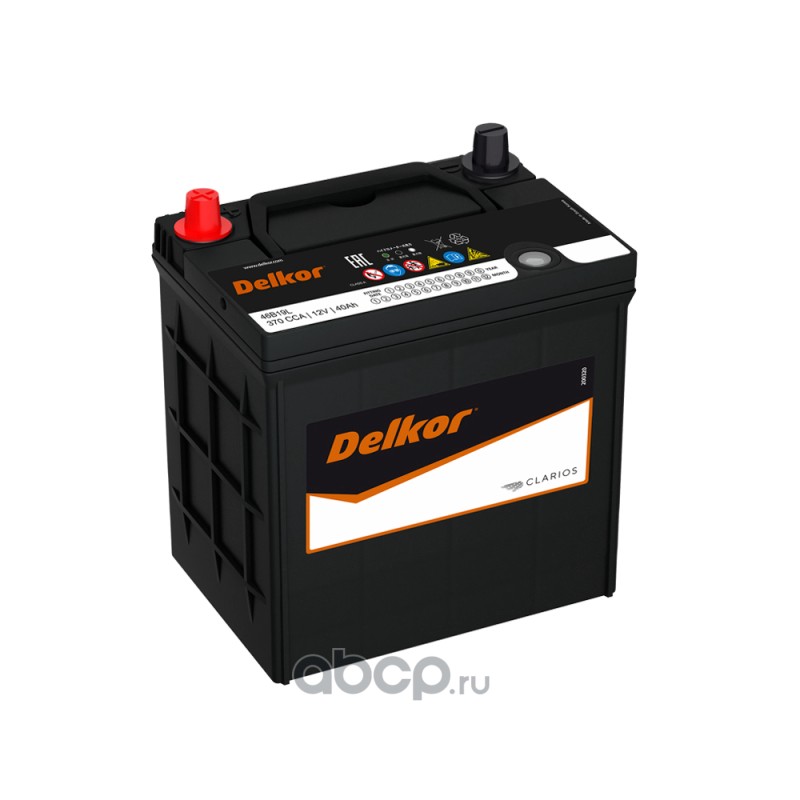 | DELKOR | 46B19L | Батарея аккумуляторная 40А/ч 370А обратная полярн. тонкие вынос. (Азия) клеммы |