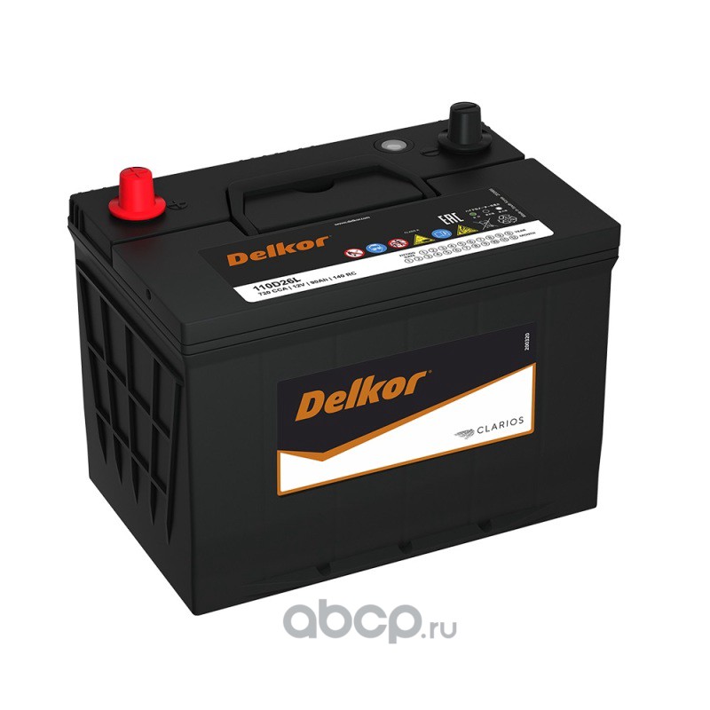 | DELKOR | 110D26L | Батарея аккумуляторная 90А/ч 720А обратная полярн. выносные (Азия) клеммы | ||