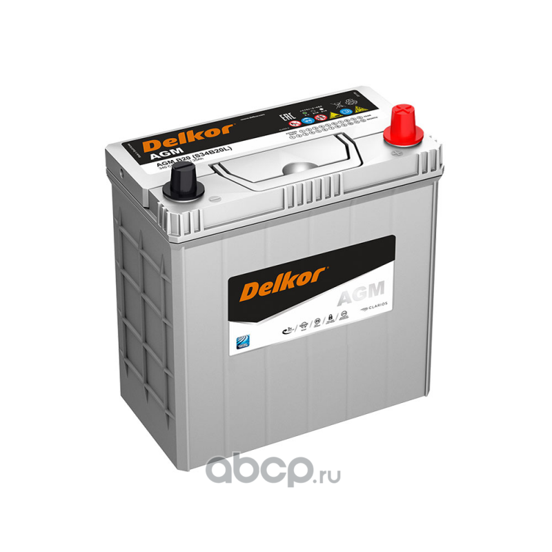 | DELKOR | S34B20L | Батарея аккумуляторная 35А/ч 340А 12В обратная полярн. тонкие вынос. (Азия) клеммы | ||