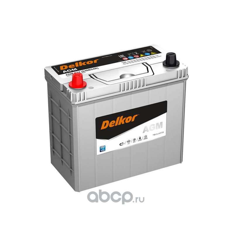 | DELKOR | S46B24R | Батарея аккумуляторная 12В 45А/ч 370А прямая полярн. тонкие вынос. (Азия) клеммы | ||