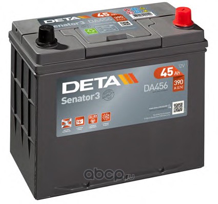 | DETA | DA456 | Батарея аккумуляторная 45А/ч 390А обратная полярн. выносные (Азия) клеммы | ||