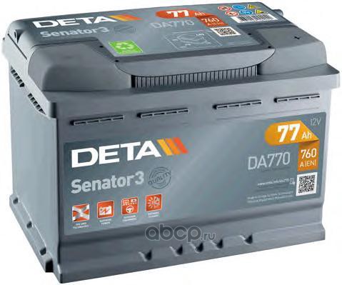 | DETA | DA770 | Батарея аккумуляторная 77А/ч 760А обратная полярн. стандартные (Европа) клеммы | ||