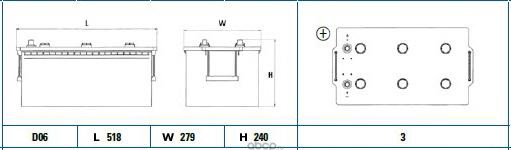 | DETA | DG2153 | Батарея аккумуляторная 215А/ч 1200А обратная полярн. стандартные (Европа) клеммы | ||
