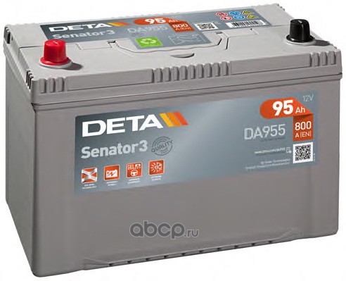 | DETA | DA955 | Батарея аккумуляторная 95А/ч 800А прямая полярн. выносные (Азия) клеммы |