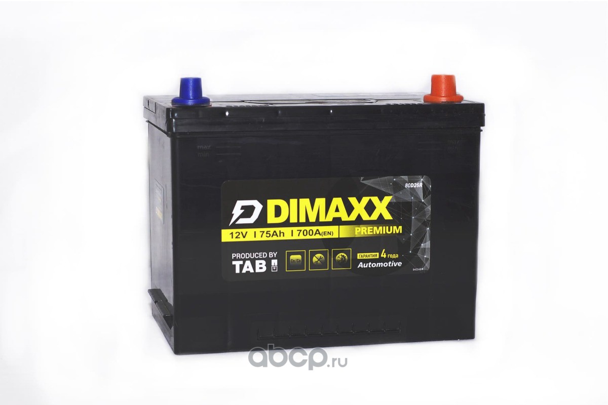 | DIMAXX | 80D26L | Батарея аккумуляторная 75А/ч 700А обратная полярн. выносные (Азия) клеммы | ||
