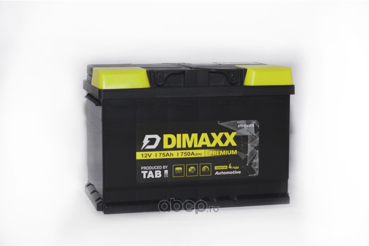 | DIMAXX | 575014075 | Батарея аккумуляторная 75А/ч 750А прямая полярн. стандартные (Европа) клеммы | ||