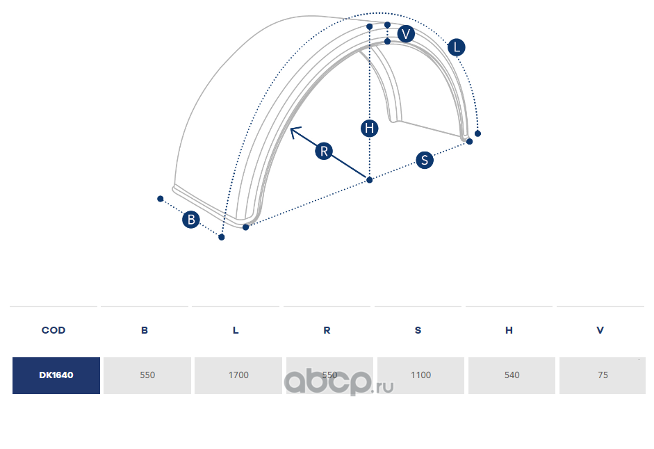 | DOMAR | DK1640 | Крыло пластиковое 550х1700х1100 R550, с белой линией | ||