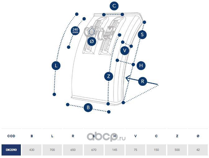 DOMAR | DK1670 | Крыло пластиковое 650х1900х1250 R630, с белой линией | |