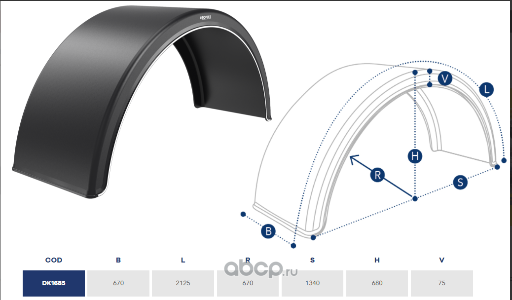 | DOMAR | DK1675 | Крыло прицепа пластиковое 430х1900х650 для одинарных колес | ||
